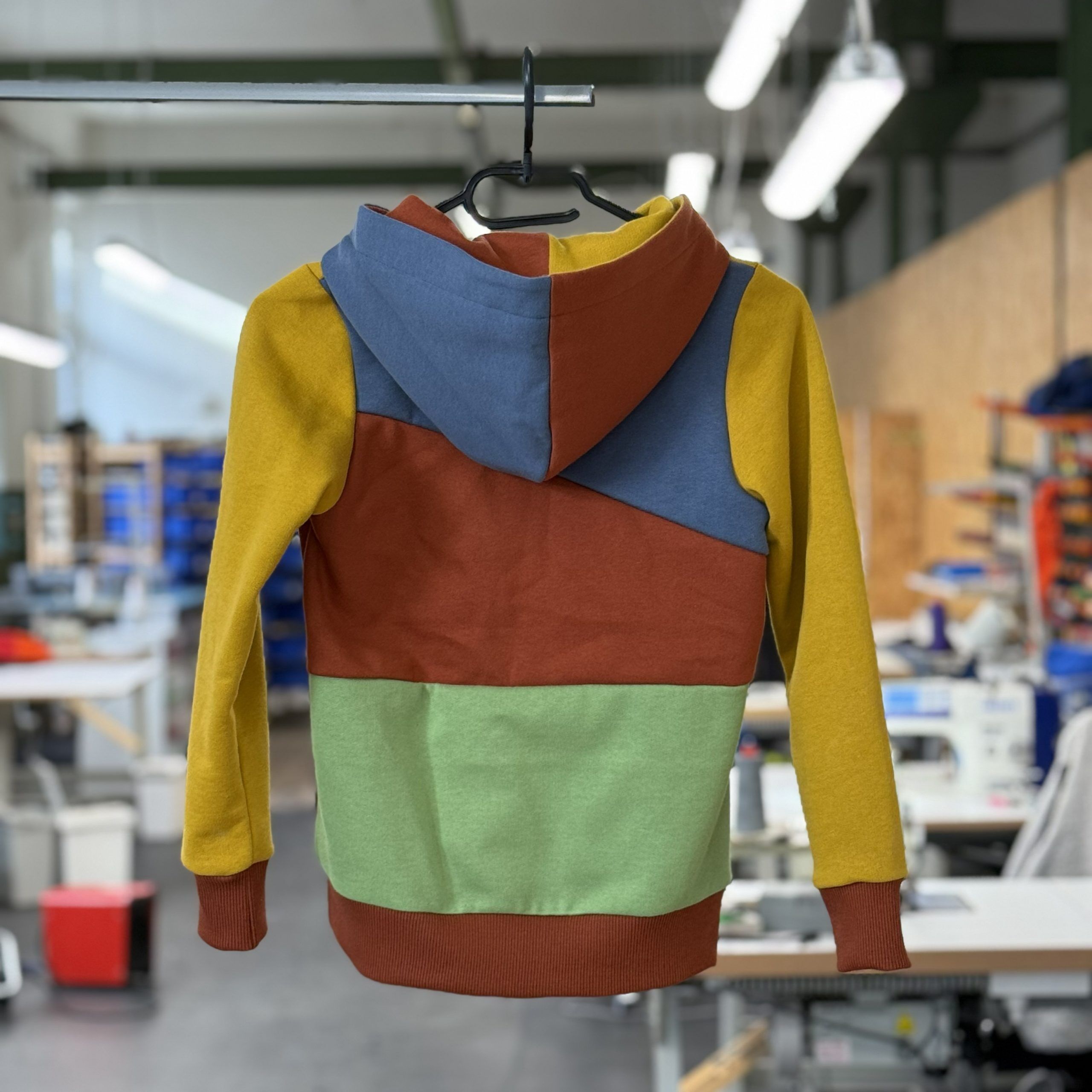 Unsere liebe Kollegin Amelie hat sich durch ausgewählte Reste gearbeitet und daraus eine kleine Kollektion an Kinder-Hoodies und Kapuzenjacken entworfen. Mit viel Kreativität sind so besondere Einzelstücke entstanden, in Kombinationen und Farben, die es so bei WASNI noch nie gab.