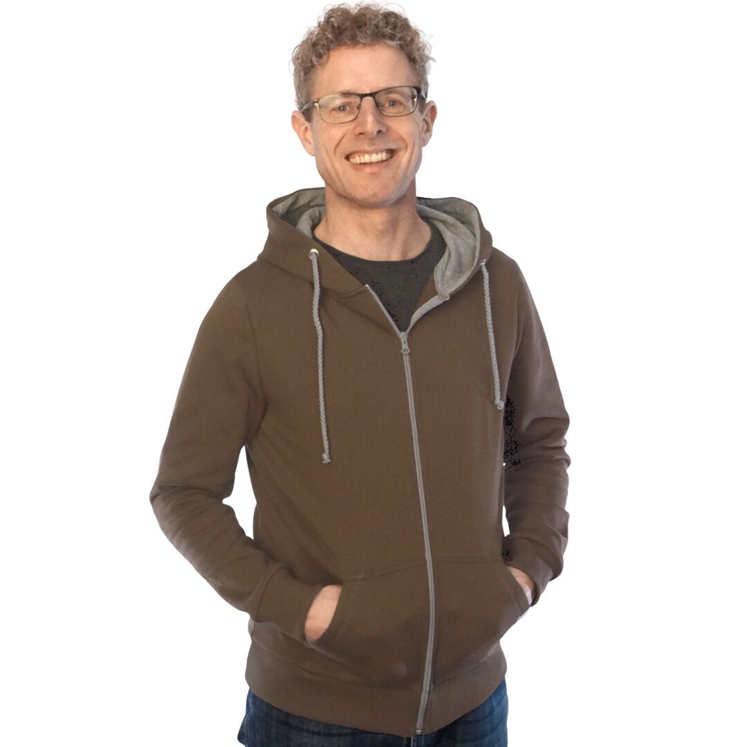 Hoodie mit Reißverschluss für Männer in braun, hergestellt aus Biobaumwolle. Kapuzeninnenfutter und Kordel sind in grau gehalten. Eine zusätzliche Kordel für den Kapuzenpullover in deiner Wunschfarbe gibt es kostenlos dazu. Eine Sicherheitsnadel zum leichten Einfädeln legen wir bei. Du möchtest deinen Hoodie mit Reißverschluss in einer anderen Farbe? Oder deine Kapuzenjacke individuell farblich selbst zusammenstellen oder suchst ein anderes Modell? Starte unseren Konfigurator.