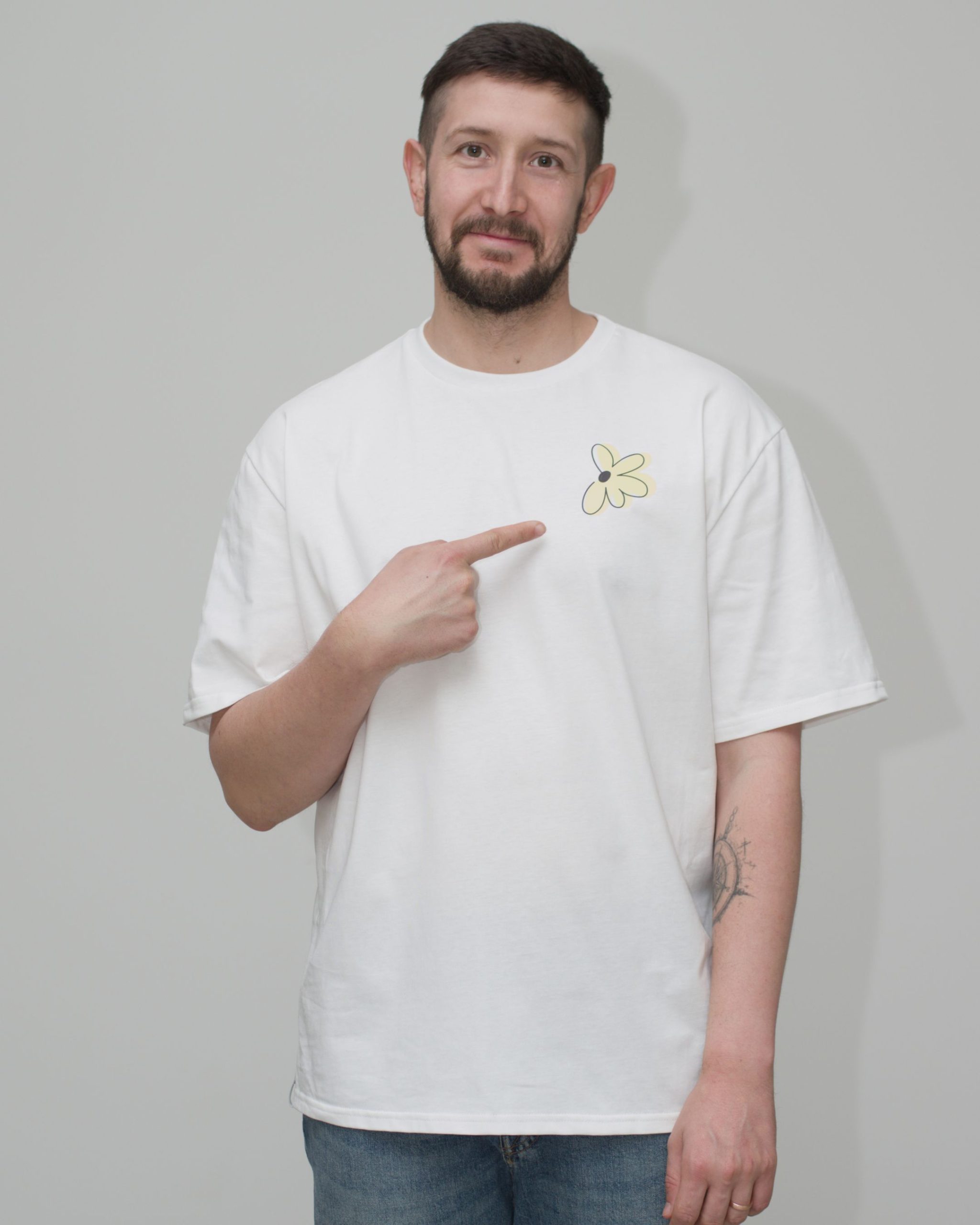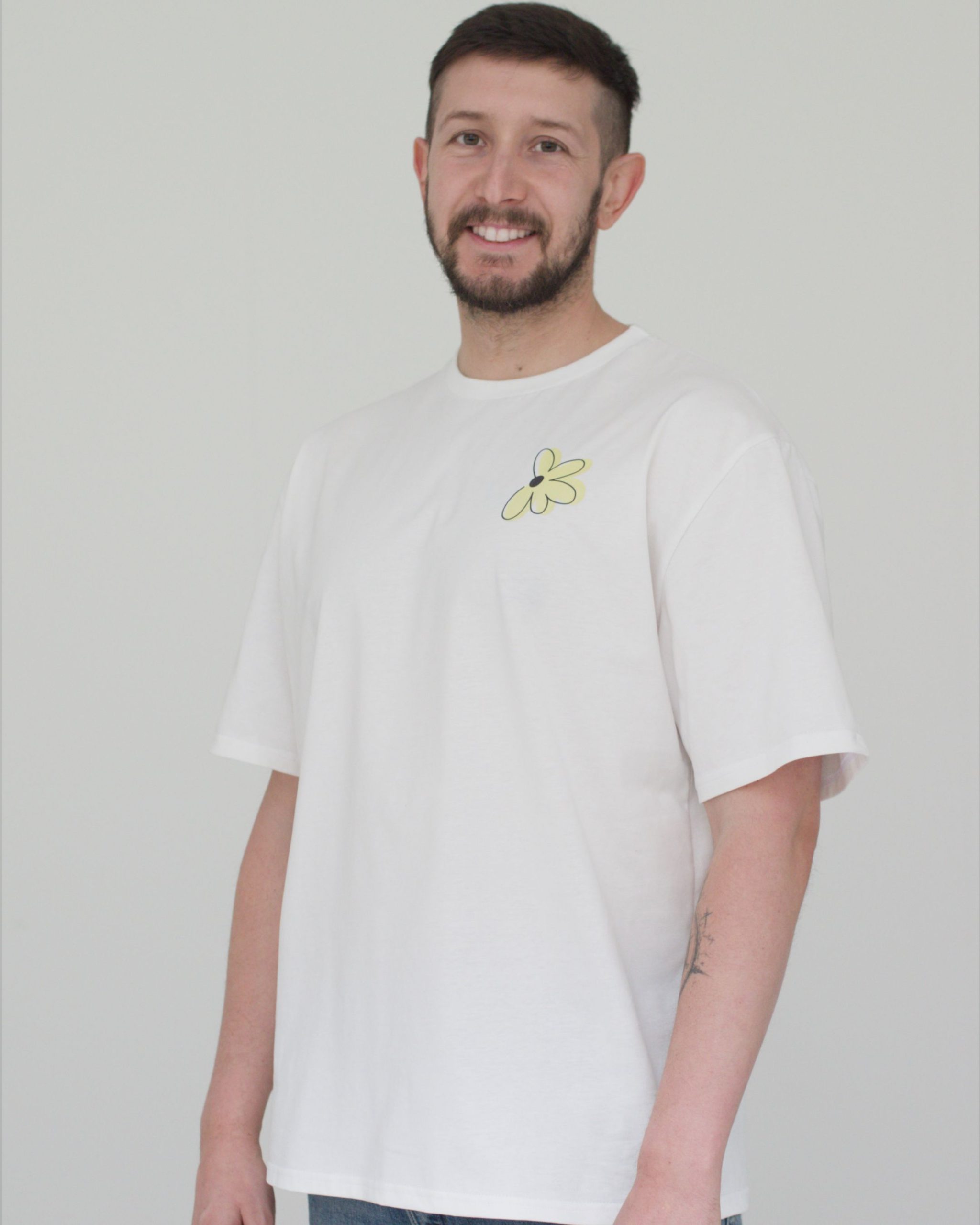 Ein reduzierter Druck in Form einer Blume mit fehlendem Blütenblatt rundet das T-Shirt ab. Die Gestaltung ist bewusst schlicht und lässt Raum für Interpretation. Sie steht für Individualität und dafür, dass es vollkommen in Ordnung ist, nicht perfekt zu sein.