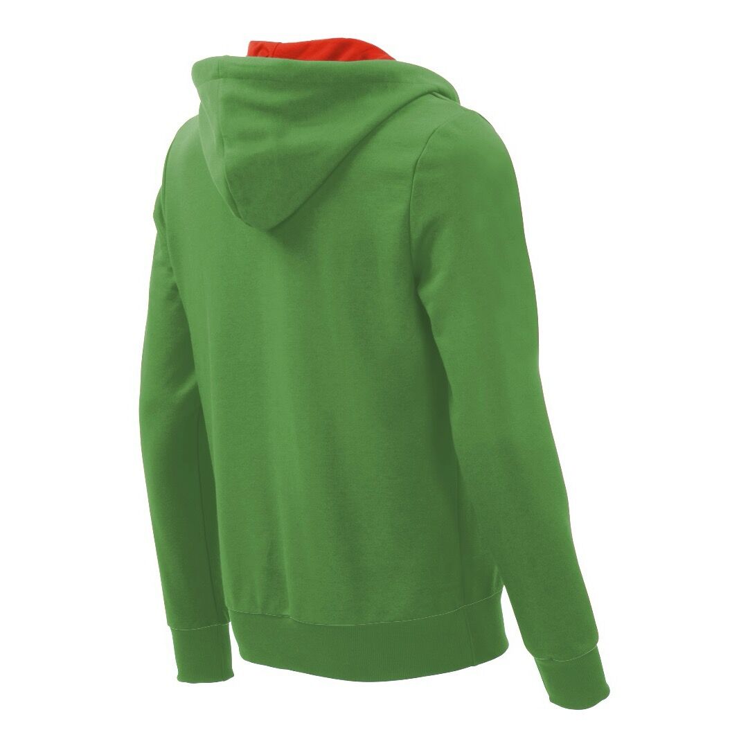 Kapuzenjacke mit hohem Reißverschluss für Frauen in der Farbe Opuntia in Größe S/M. Die Länge der Ärmel wurde um 2cm verringert und der Rumpf um 2cm verlängert. Hergestellt aus Biobaumwolle.