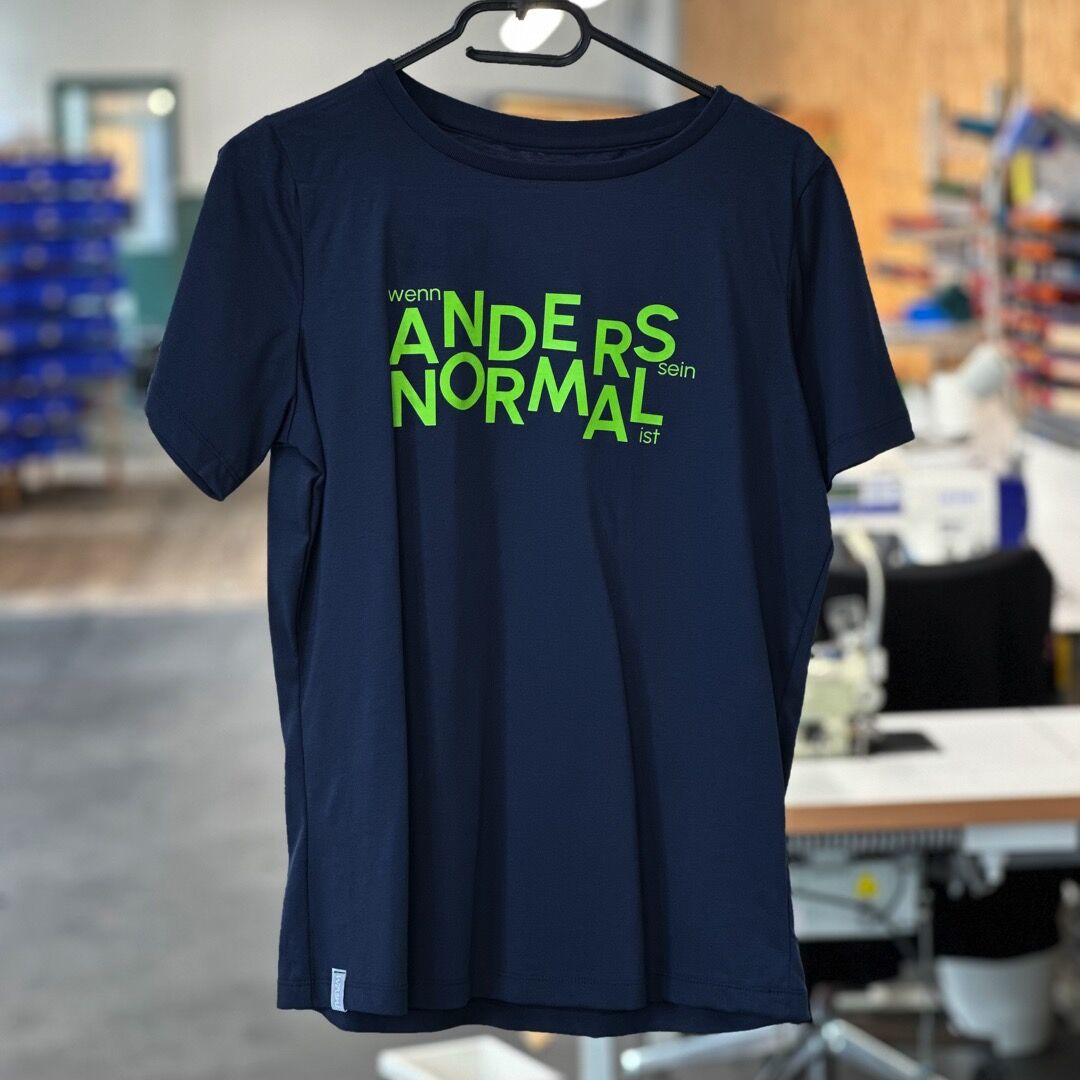 Ein tailliert geschnittenes T-Shirt für Frauen aus reiner Bio-Baumwolle in Größe M. Dieses T-Shirt wird so nachhaltig und fair wie irgend möglich hergestellt. Der Stoff ist GOTS-zertifiziert – heißt: Bei der Aufzucht der Baumwolle wird vollständig auf die Verwendung von genmanipuliertem Saatgut, mineralölbasierenden Kunstdüngern und Pestizide verzichtet. Gestrickt und gefärbt wird der angenehme Jersey-Stoff in Portugal. Und alles unter Einhaltung sozialer Standards: Mindestlohn, Betriebsratgründungen, Arbeitssicherheit – ansonsten gibt es kein GOTS-Zertifikat. Darauf achten wir beim Einkauf. Das Design, die Schnitterstellung, Zuschnitt und Nähen – dies passiert dann alles in unserer inklusiven Manufaktur in Esslingen in Deutschland. Du möchtest ein anderes Druckmotive oder ein einfaches Basic-Shirt? Hier findest du die Übersicht T-Shirts für Frauen.