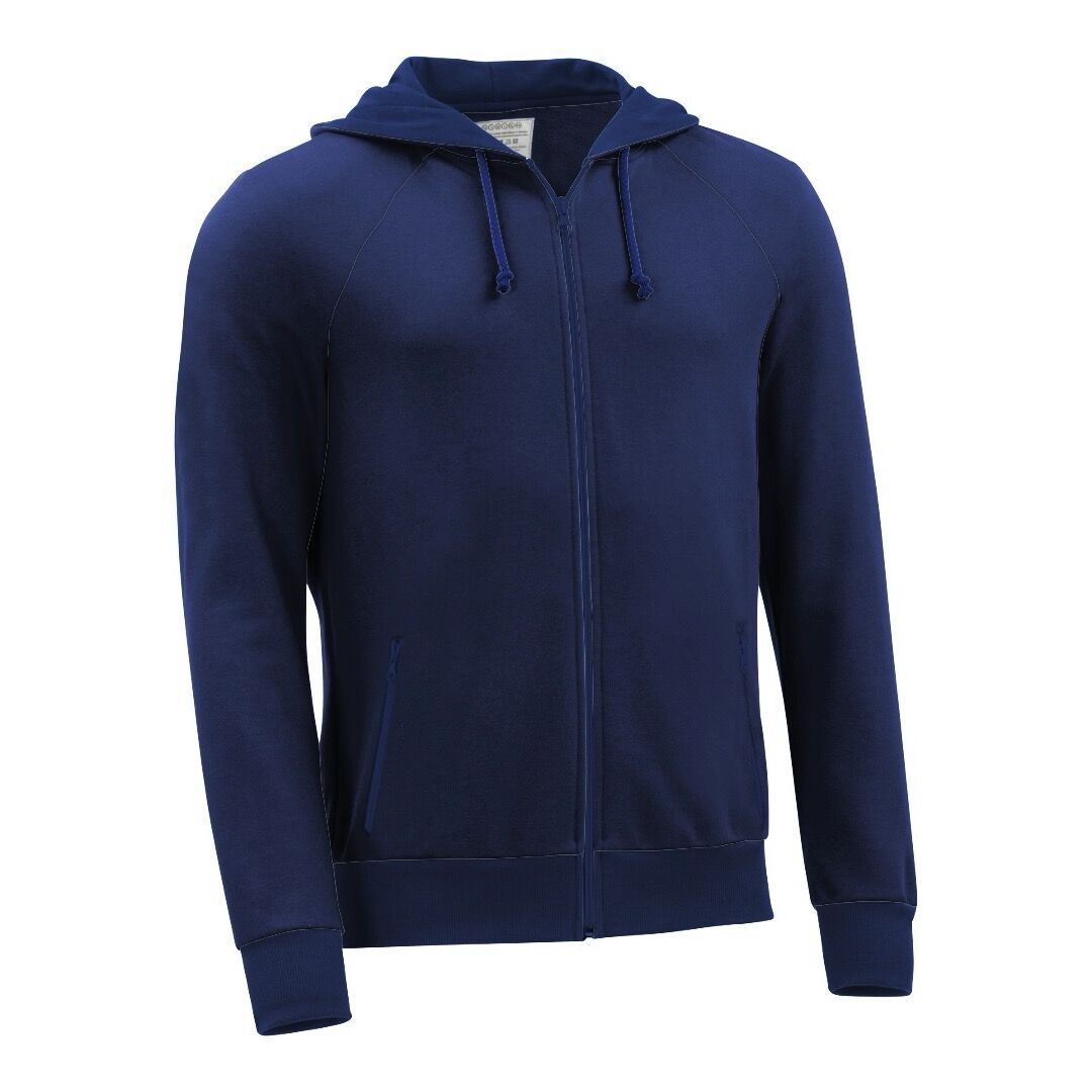 Kapuzenjacke mit Raglanärmeln und Reißverschluss-Taschen für Frauen in der Farbe Tiefsee in Größe S/M. Ärmel und Rumpf um jeweils 2cm verkürzt, Hüftumfang um 2cm erhöht.