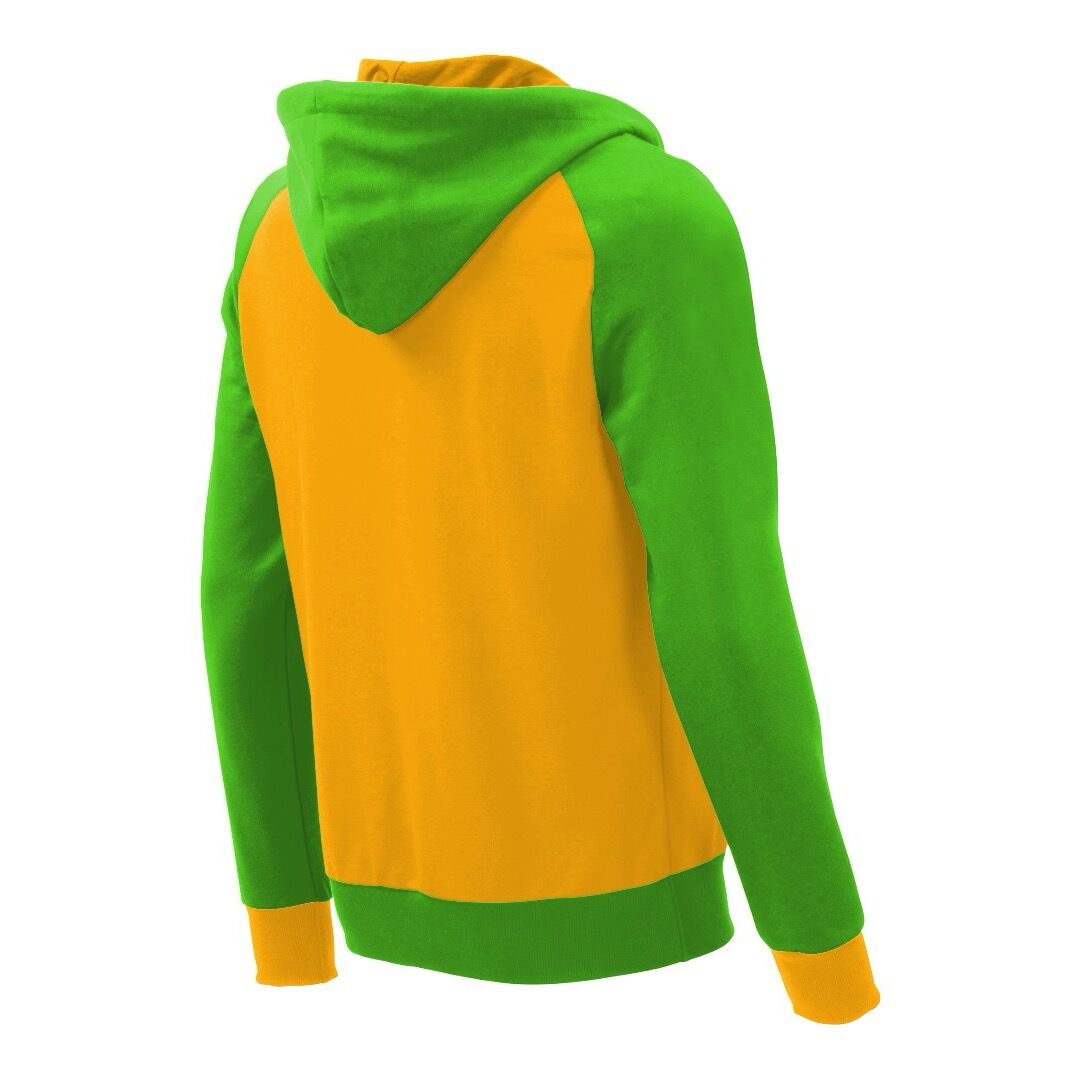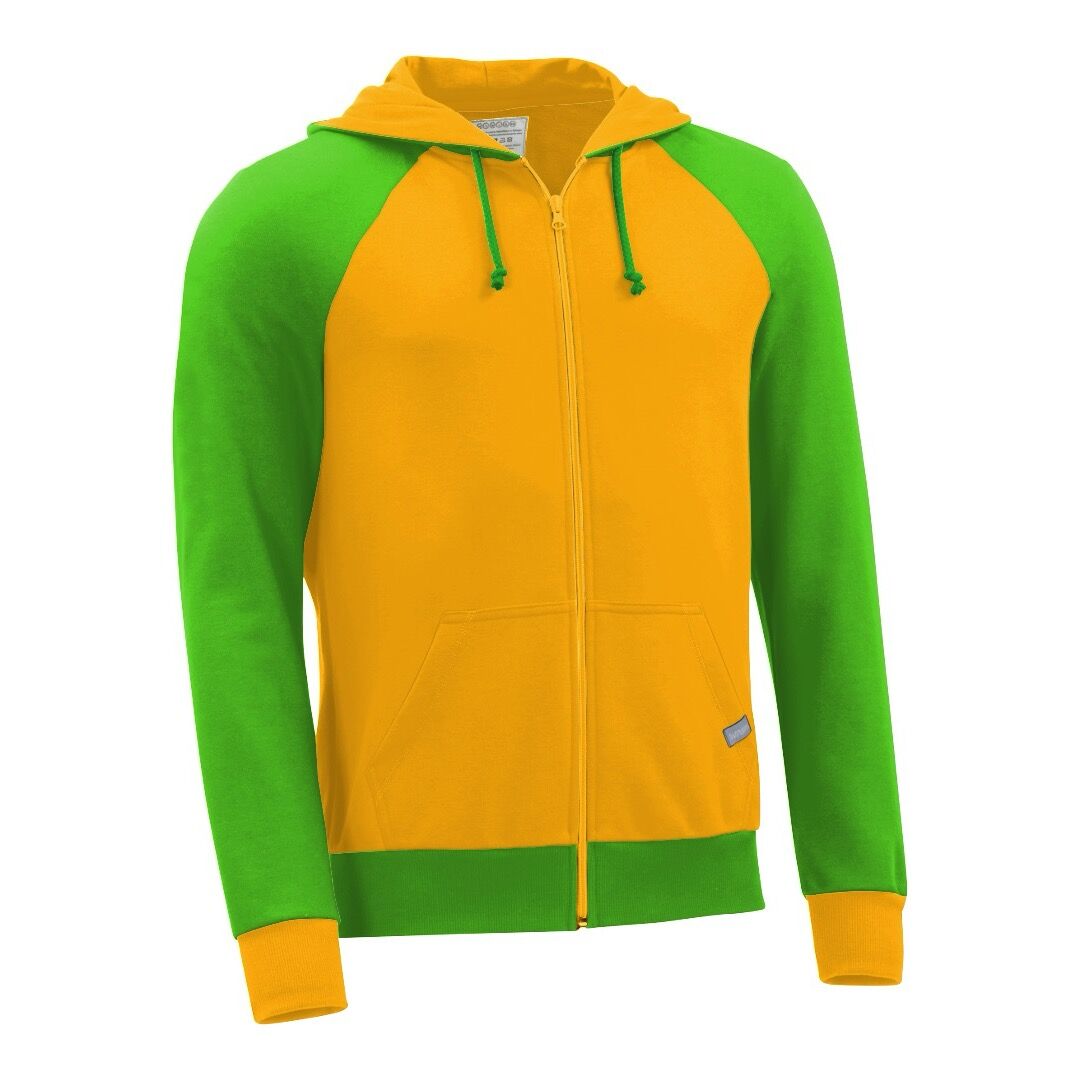 Kapuzenjacke in den Farben Gelb und Knallgrün für Kinder in Größe 152, hergestellt aus Biobaumwolle.