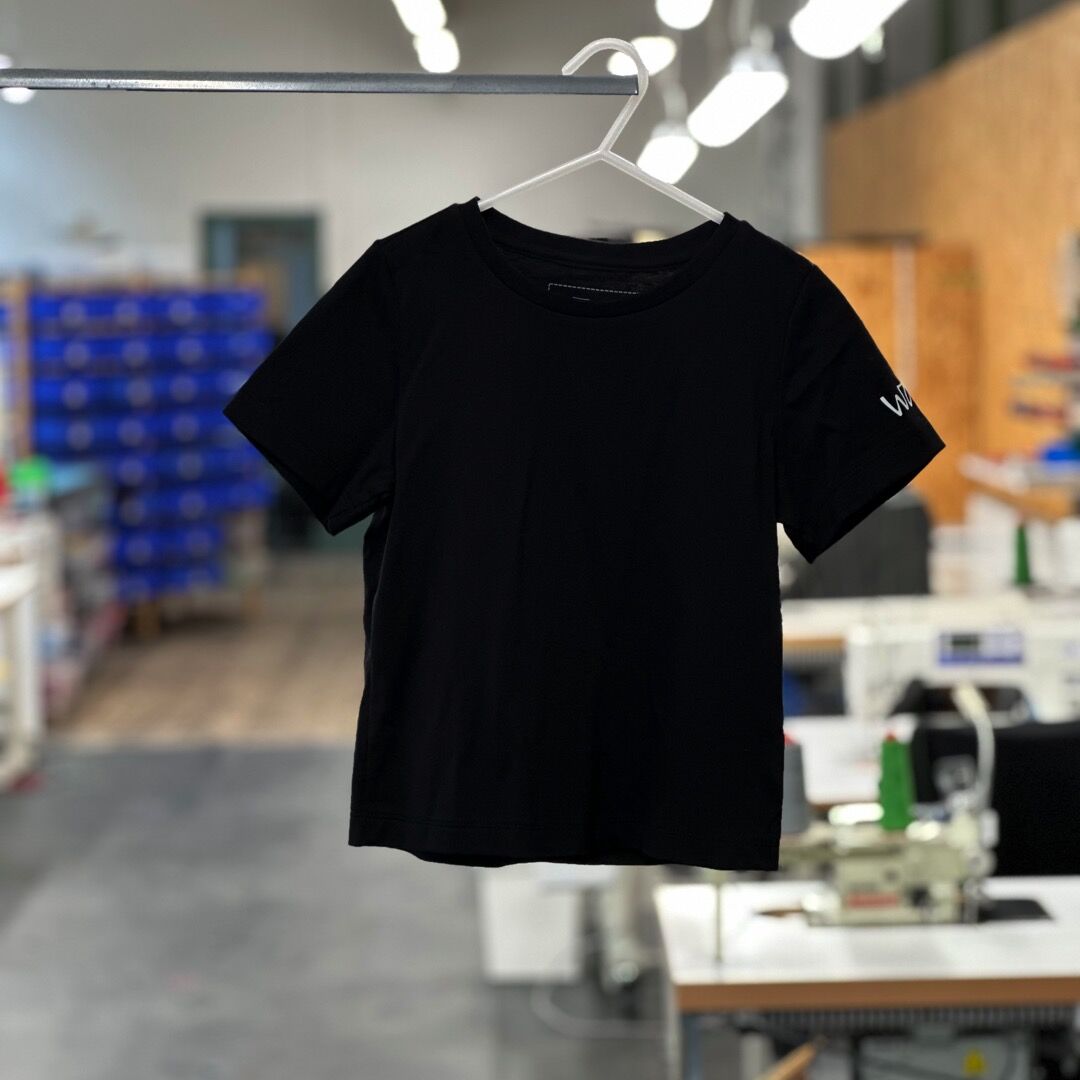 Ein basic T-Shirt in schwarz für Kinder aus reiner Bio-Baumwolle in Größe 128. Dieses T-Shirt wird so nachhaltig und fair wie irgend möglich hergestellt. Der Stoff ist GOTS-zertifiziert – heißt: Bei der Aufzucht der Baumwolle wird vollständig auf die Verwendung von genmanipuliertem Saatgut, mineralölbasierenden Kunstdüngern und Pestizide verzichtet. Gestrickt und gefärbt wird der angenehme Jersey-Stoff in Portugal. Und alles unter Einhaltung sozialer Standards: Mindestlohn, Betriebsratgründungen, Arbeitssicherheit – ansonsten gibt es kein GOTS-Zertifikat. Darauf achten wir beim Einkauf. Das Design, die Schnitterstellung, Zuschnitt und Nähen – dies passiert dann alles in unserer inklusiven Manufaktur in Esslingen in Deutschland.
