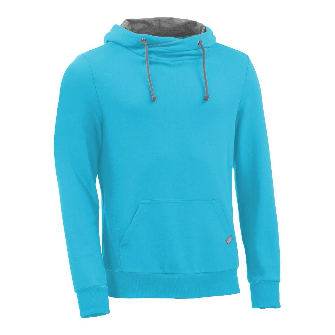 Kapuzenpullover mit Schalkragen in Türkis für Männer in Größe S, hergestellt aus Biobaumwolle.