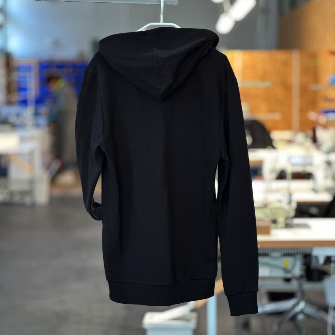 - Hoodie-Hauptstoff: mittelschwerer, aufgerauter Sweat aus 100 % Bio-Baumwolle (kbA)